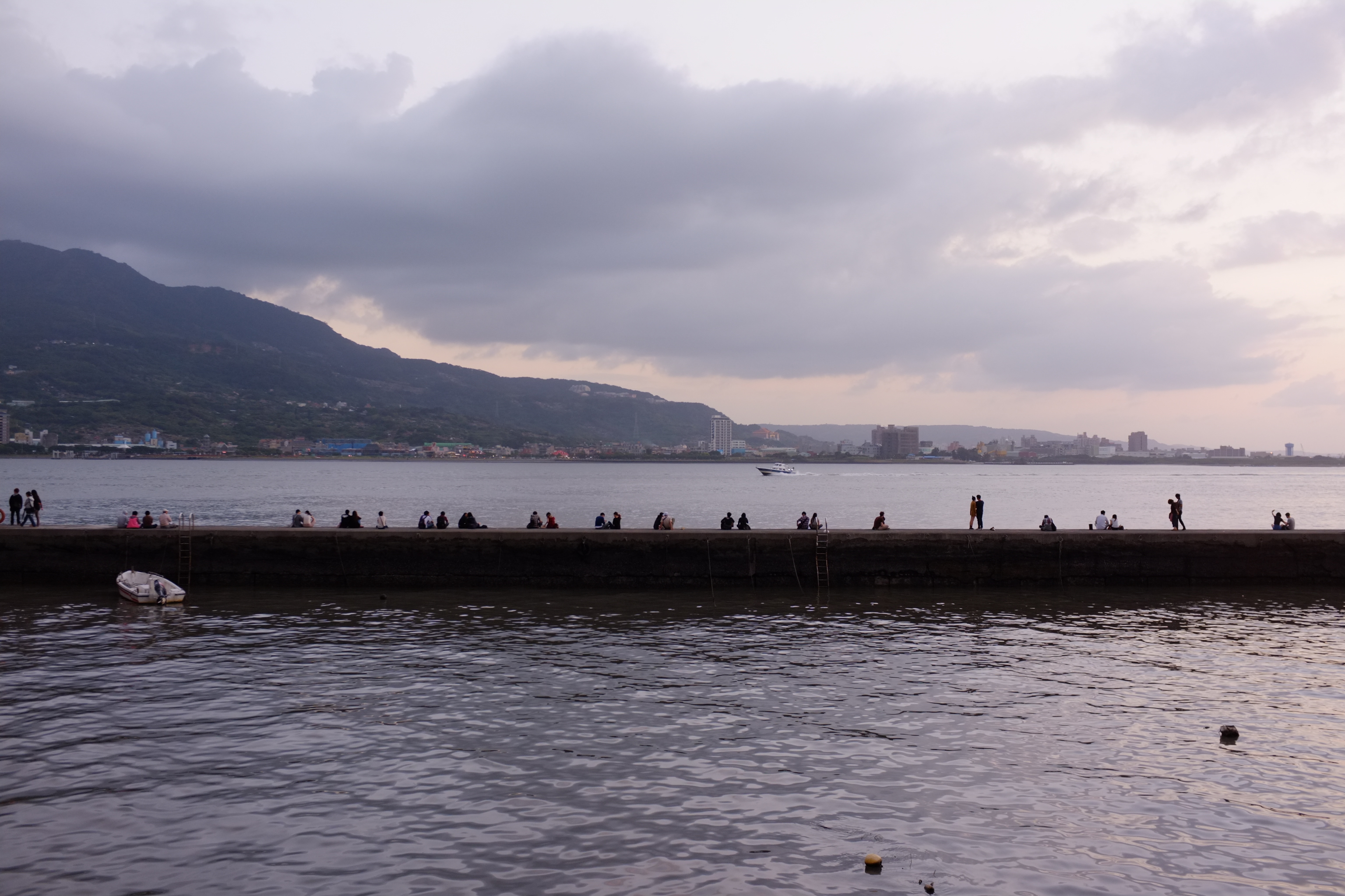 淡水渔人码头,夕阳下的码头,情人们互相依偎