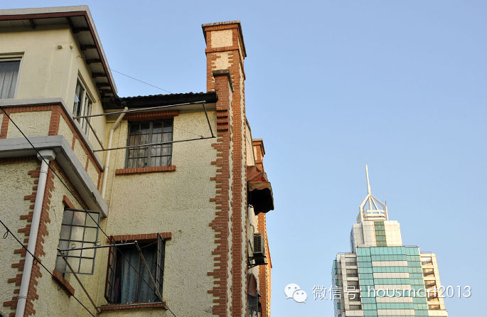 走 进“林邨”纯属偶然,那天,去模范邨、四明邨等挂着“优秀历史建筑”名头的新式里弄,途中路过威海路910弄‘林邨’(就在模范邨对马路),无意间瞥见了 弄底有一高大柱状建筑体,在好奇心的驱使下进入弄堂前去探个究竟,原来那是隔壁中苏友好大厦(上海展览馆)的一个烟囱,做得很有艺术性,的确少见。再来仔 细瞧瞧‘林邨’,规整的纵横布置、新式里弄联排建筑,想当年,隔墙就是大名鼎鼎的“哈同花园”,‘林邨’应当不会平庸。