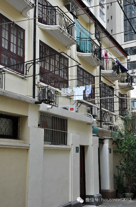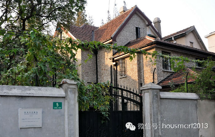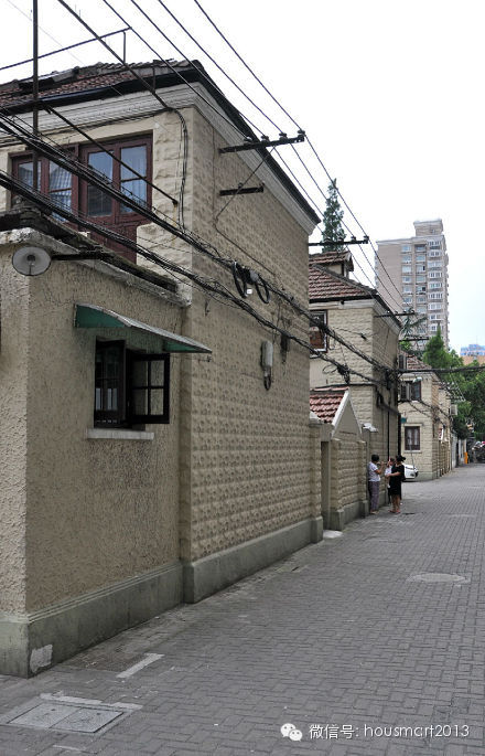 淮 海中路1487弄,上海新村,夹在了“美领馆”和曾经的“日领馆”两座豪宅中间,区域位置自然相当地显赫了。该建筑群建于1939年,属新式里弄住宅,上 海市优秀历史建筑。弄堂内共有混合组合结构的楼房五十六幢,呈行列式布置,现代派建筑风格的联排住宅,楼高三层,坡顶,水泥砂浆外墙,立面简洁,基本无装 饰,具有上海新式里弄典型的的形象特征,这是老上海中产阶层首选的‘新里’住宅类型。